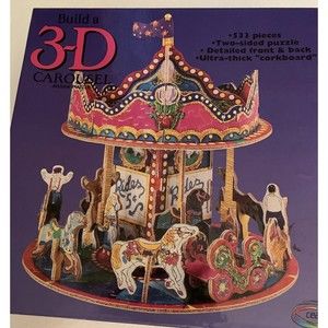 3D Carousel Puzzle 533 Pcs Two sided Corkboard 10x10x10 Ceaco 1026 VTG 1994 NEW SEALED. Box has some slight condition issues- see photos
