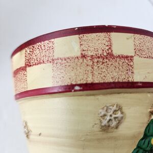 3D Christmas Tree Flower Pot 4.25" X 4.25" Snowflakes Checker Trim Vtg Set of 2