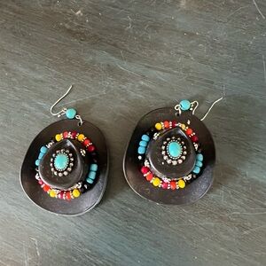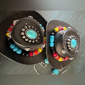 3D Concho Cowboy Hat Dangle Earrings with Seed Beads. Festival