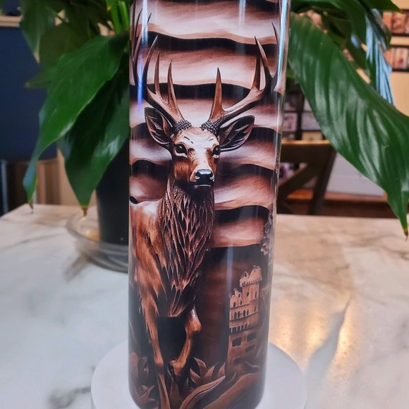 3D Deer with American Flag 20oz Tumbler with duo lids