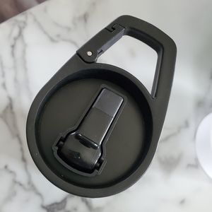 Comes with Black Screw on Flip Top Hydrosport Carabiner Clip Lid and a clear lid and a clear plastic straw.