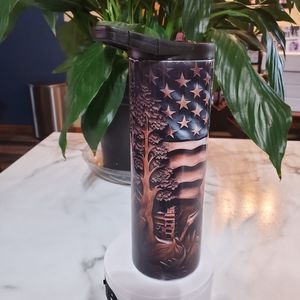 3D Deer with American Flag 20oz Tumbler with duo lids 🎉sale