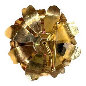 3D Enameled Layered Pink Swirl Flower Carnation Vintage Gold Flower Brooch Pin