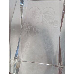 3D Etched Crystal Holy Family w/ lighted stand y2k Jesus Mother Mary 3 in