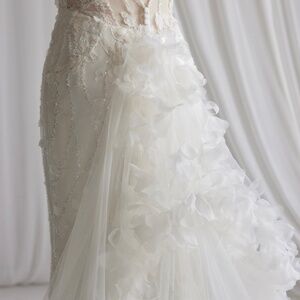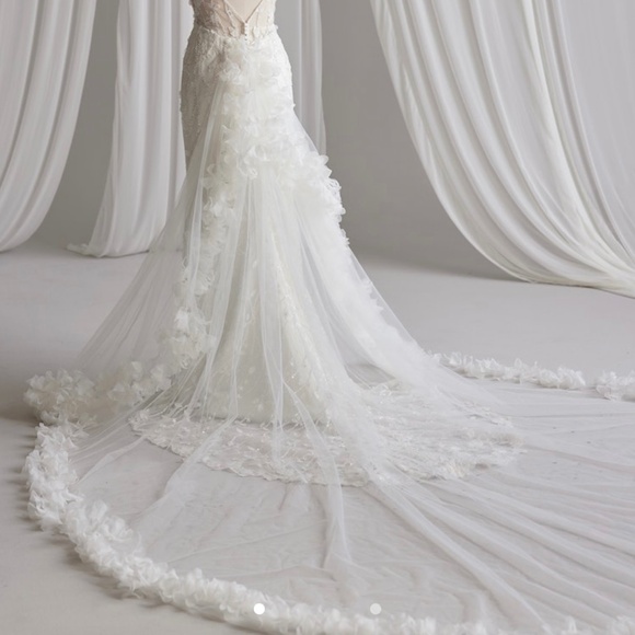 Illusion 3D floral detachable wedding train with dramatic tiers and ruffles