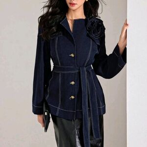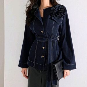 3D Floral With Contrasting Stitching Design, Elegant And Versatile Casual Jacket