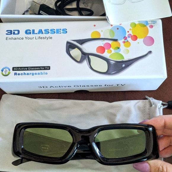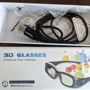 includes box, USB cord, glasses, soft case, glass cleaner cloth and user manual.