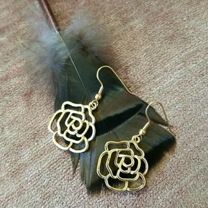 ♤ Gold Rose Earrings - 3D (not flat)