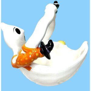 3D Halloween Ghost Ceramic Basket Serving Bowl Candy Dish Spider Web Lizard READ