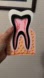 Detailed anatomical tooth model with pink, black, and cream colors. Ideal for educational purposes.