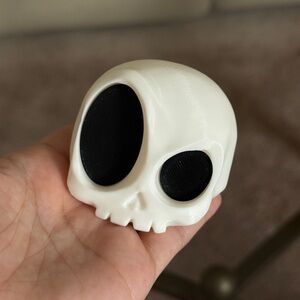 Stylish skull accent with a sleek design. Cream surface with bold black features. Ideal for holiday decor.
