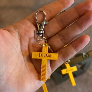 3D Printed | Yellow Cross Keychain Jesus | 5 SET