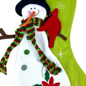 3D Puffy Fleece Snowman Scarf Cardinal Christmas Holiday Stocking Embroidered 17