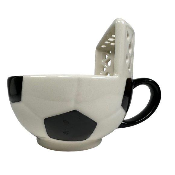 3D Soccer Ball & Net Mug Dish Coffee Cup Soup Bowl Maxi's Creations White Black