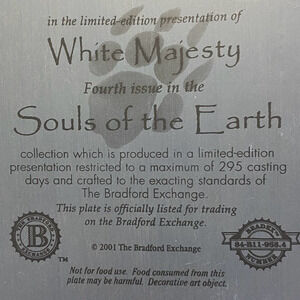 3D Souls Of The Earth “White Majesty" 2001 Bradford ExchangeWall Hanging Plaque COA #1499 - A690