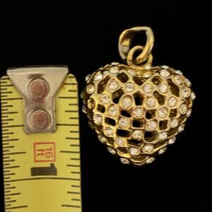 3-D - Sparkling Bling Rhinestone Heart Pendant - Gold Tone