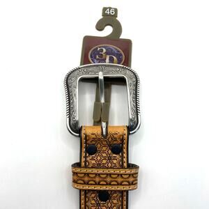 3D Studded Tooled Leather Western Belt Men 46 Tan Brown Ornate Cowboy Rodeo NWT