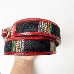 3-D VINTAGE Saddle Blanket Red and Black Leather Belt Size 34