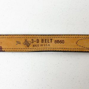 3-D Vintage Leather Belt. Saddle Blanket Style. Red Leather. Made in USA. Very Good Vintage Condition. Size 34.