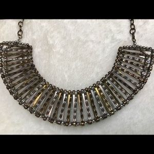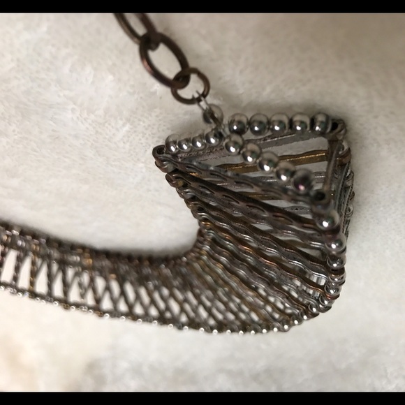 Gold, silver and copper colored 3D necklace. Hand crafted.