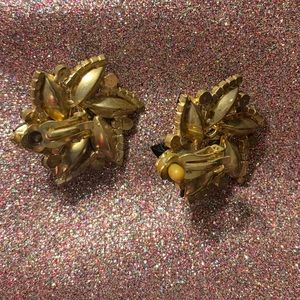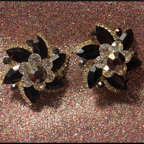 Clip-on 3D flower earrings. One of the petals is a bit out of the original shape, minor defect.