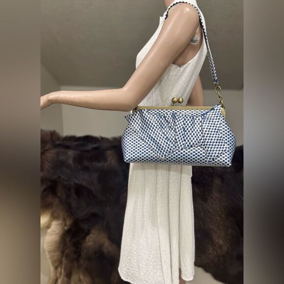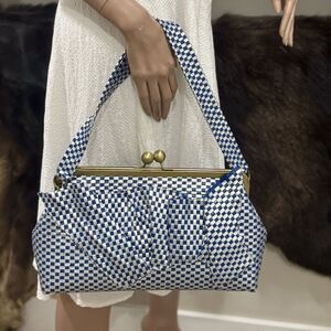 3D Abstract Art With Woven checkered Leather Handmade Oversized Kisslock Bag