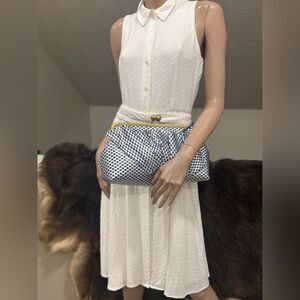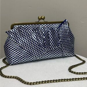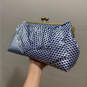 One of a kind. Uniquely beautiful, great quality. Extra large size. Handmade from checkered wove leather with 3D abstract art design. Use in multiple ways, wear as a clutch, underarm bag, shoulder bag or crossbody.