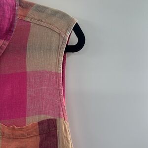 3For$20 Time and Tru Plaid Pink/Tan Sleeveless HalfButton Down Blouse size: XXL
