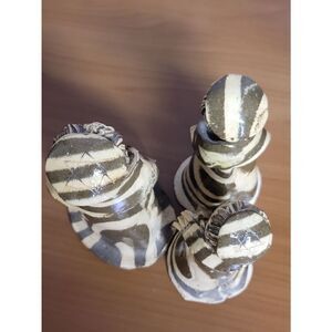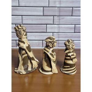 Available for your consideration are 3 handmade figurines. Two of the figurines have the star of David on their hats. They are breakable. They are olive green and cream.Very unique. No notable flaws found during inspection. Measurements shown in photos. Preview pictures for a visual description before purchasing.