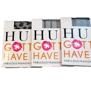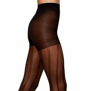3-Hue Women's Sheer Control Top Black Pantyhose, Leafy Vines/Bold Stripe/Floral