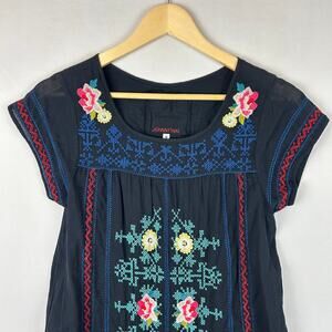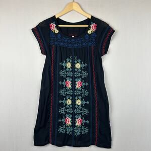 3J Workshop Johnny Was Blue Floral Embroidery Short Sleeve Dress Women's Size S