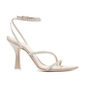 3Juin Revolve 100mm crystal-embellished strap sandals heels shoes silver $475 8