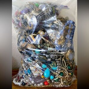 This listing is for a predetermined amount of jewelry (in title) that is unsearched and could be wearable, tangled, junk , and/ or for Jewelry crafts! All types of jewelry is included! There are signed and unsigned pieces as well as pieces for where and or resell, which may be tangled or not; jewelry of all ages. I do not have time to clean jewelry. I DO have an eye for what’s pretty/ stylish. I packed quick Lee by the handfuls out of the mini bins shown in the sample pictures. The more you buy the better price you get, not to mention the huge savings on shipping!