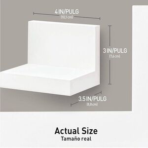 Set of 2 white display ledges by 3M Command. Perfect for showcasing small items. Easy to install and damage-free.