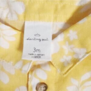 New with tags 3M Starting Out linen bright yellow shirt and shorts set with white floral pattern. Features button-up shirt and elastic waist shorts.