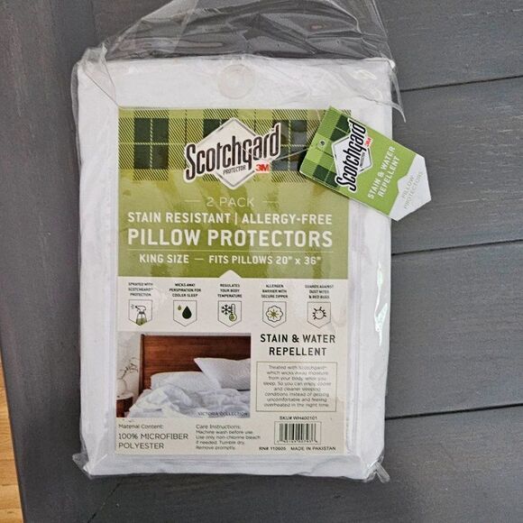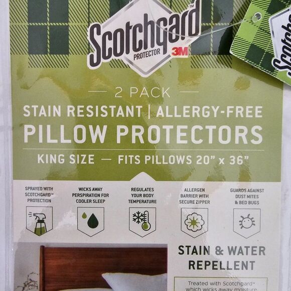 The Scotchgard Pillow Protector helps protect your pillows from stains while forming a barrier between you and dust mites, bed bugs, allergens, pollen and pet dander. We have the Scotchgard Pillow Protector cover to complete set. Machine washable for easy care.