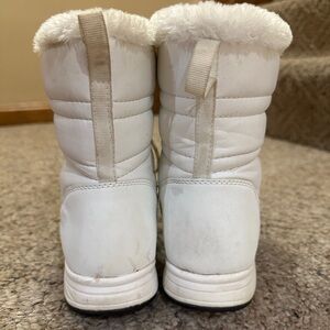 Elegant white winter boots featuring 3M Thinsulate insulation. Soft fur trim for added warmth.