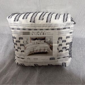 3PC FULL QUEEN RHEA COTTON DUVET MINI SET IVORY/CHARCOAL