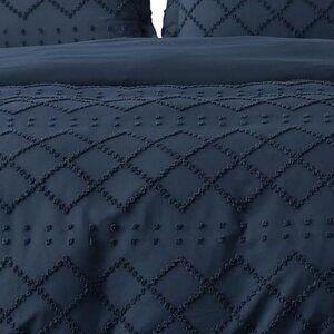 3PC KING DUVET SET Navy Blue Boho Cottage Tufted Design Duvet & 2 Shams NEW