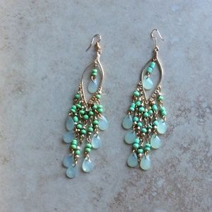UNIQUE STYLES BOUTIQUE - New 3pc: Three-piece bundle set – golden forest emerald green bead chandelier dangle drop hook earrings, flower clip in feather floral hairpiece, horn moon necklace. Very BoHo chic hippie gypsy tribal Bohemian style. Magical Band of Gypsies Los Angeles Raga Anthropologie Bare anthology Flying tomato Honey Punc a American Rag boohoo Johnny Was Roz & Ali Retro Nasty Gal T-Bags Misa LA Los Angeles cecico mumu ** More Designs go to "brand" under "Unique Styles jewelry set”