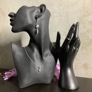 🌸 3PC PENDANT GEMSTONE NECKLACE LEAF EARRINGS RING MOONSTONE BUNDLE SET SILVER