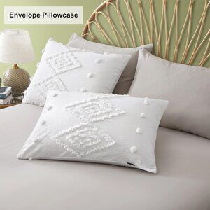 3PC QUEEN KING DUVET SET WHITE Boho Cottage Tufted Design Duvet & Pillowcases