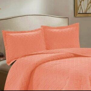 3PC Quilt Bedspread Set Oversized Queen Peach Amber