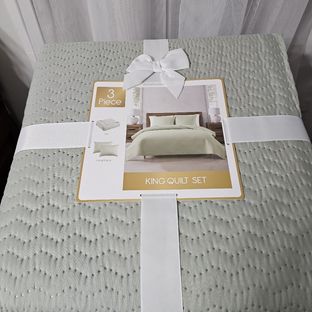 3 piece quilt: 2 shams and quilt Color is sage Machine washable Smoke-free home No pets