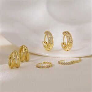 3PCS Gold Hoop Huggie Earrings Set | Chunky & Trendy Fashion Hoops