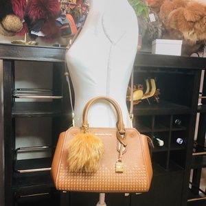 Michael Kors Hayes Medium Messenger Bag/Satchel With Matching Wallet and Fur Key Charms