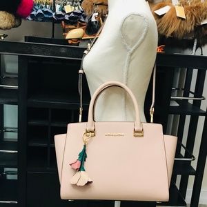 Michael Kors Selma Medium Satchel with Matching Wallet and Flower Key Charms