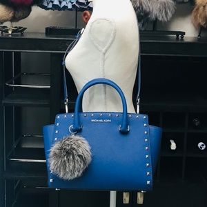 Michael Kors Selma Stud Medium TZ Satchel with Matching Wallet and Fur Key Charms