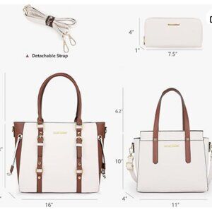 This women's tote purse made of PU leather. The stitching is well made as smoothly to touch. The lining of this tote bag purse was used the supreme cloth. There's no chemical left in this women's purse. 3pcs in 1 set, it is convenient for you.