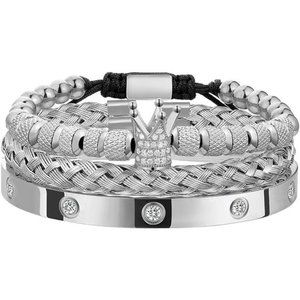 3PCS Stainless Steel Imperial Crown Bracelets for Men Gold Roman Numeral Bangle